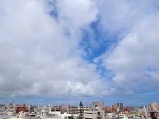 今日の沖縄の空、ふわふわの雲が気持ち良さそうに泳ぎ、