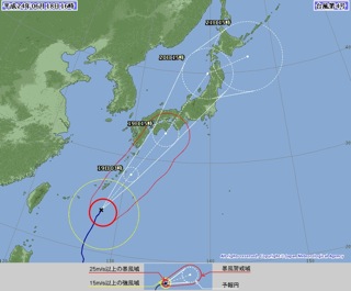中心気圧は、955hpa。中心付近の最大風速は40m/s。最大瞬間風速60m/s。