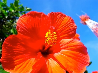 いつも心は南向きのFM沖縄でハイビスカスをキラリ撮影(笑)。