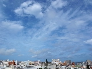 今日の沖縄の空、青空のキャンバスに雲の落書き、