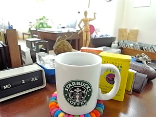 スターバックス・コーヒーのマグカップwith Mini Cooper in Officeで。
