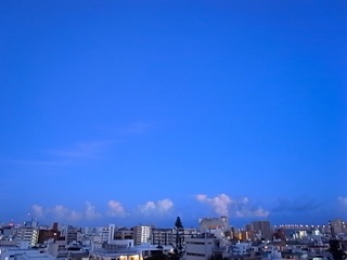 写真は、午前5時頃撮影した空。沖縄の夜明け。