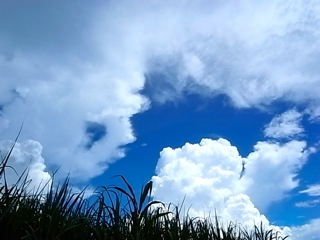 さとうきびと青空と沸き上がる入道雲@読谷村。