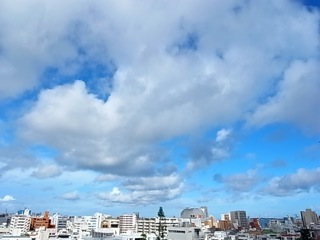 今日の沖縄の空、明け方からいつもより、雲が多め目の空。