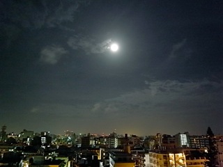 写真は、昨日朝4時ごろの旧暦16日早朝の月。