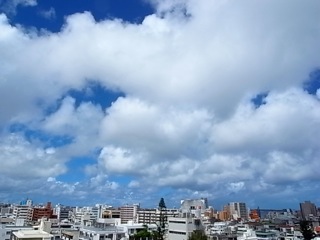 今日の沖縄の空。フィリピンの東に 台風第13号 (カイタク)が発生してます。