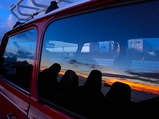 写真は、一昨日撮影したミニクーパの窓に映るウインドウ・サンセット。