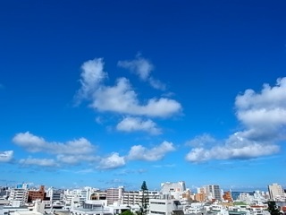 今日の沖縄の空も青空と白い雲のコントラストが綺麗です。