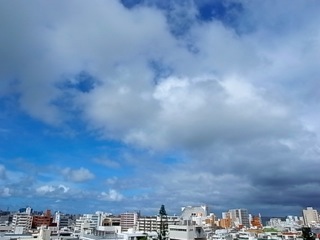 今日の沖縄の空。緩やかな東南東の風が吹いています。