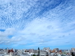 今日の沖縄の空。少し厚めの鱗雲が空一面に。