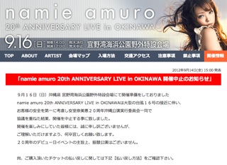 namie amuro 20th ANNIVERSARY LIVE in OKINAWAは大型の台風16号の接近に伴い、