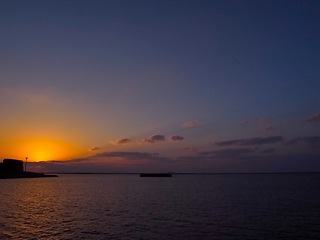 橙色と藍色のコントラストが美しい秋の夕陽@那覇市港町。