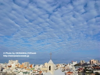 鱗雲が西の空に広がった今日の沖縄の空。