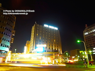 写真は公演終了後オフィスへ戻る途中、撮影した夜の沖縄県庁前交差点。
