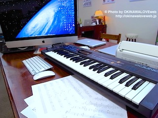 仕事の合間に、明日レコーディング予定の楽曲のアレンジ確認を。