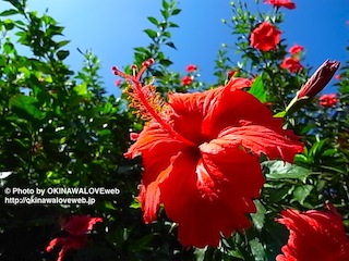 写真は、移動中に首里で見つけたハイビスカスの垣根。