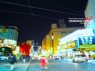 観光客で賑わう夜の国際通りを車の窓全開で走行。