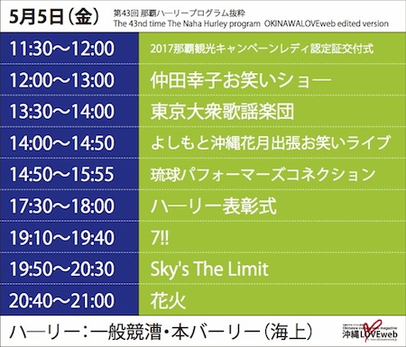 第43回 那覇ハーリー 2017|ステージプログラム(抜粋)掲載|今日の沖縄170427