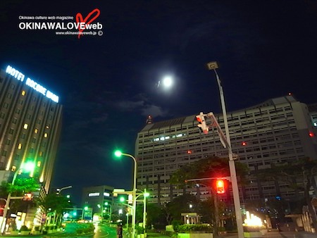 少し気分転換に国際通りをドライブ。東の空には美しいフルムーン。