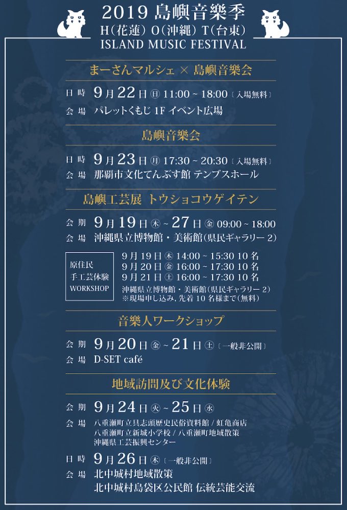 台湾×沖縄 音楽とアートの文化交流イベント「島嶼音樂季2019」INFOTMATION