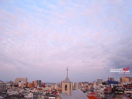 明け方、西の空がパステルカラーに染まった今日の沖縄の空。