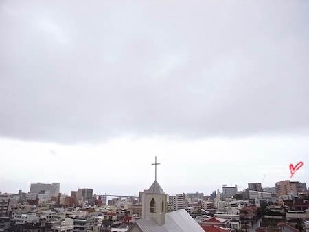 大粒の雨が降る今日の沖縄の空。