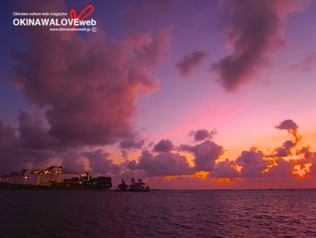 今日は最高気温25℃と夏日となった沖縄、サンセットも夏の色彩のよう。