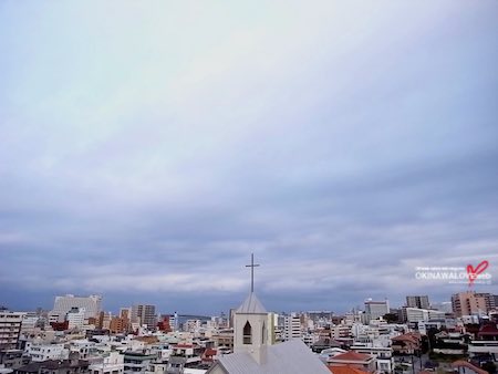 沖縄地方は、寒気の影響で曇っており、雲のすき間で晴れている所もあります。