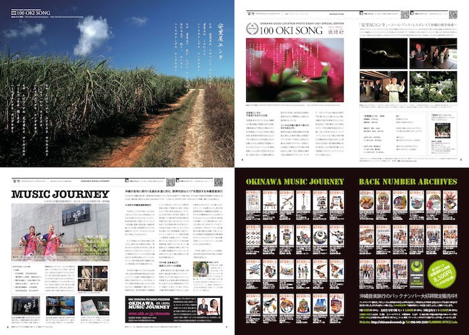 沖縄民謡に学ぶコーナー、アーティストインタビューコーナー、百沖ソングCDレビュー、ミュージックジャーニーマップなど内容満載!! 『100年先に伝えたいおきなわのうた』をキーワードに企画編集出版している雑誌 沖縄音楽旅行。沖縄の先達が紡いで来たおきなわのうたから、最新の沖縄音楽まで沖縄カルチャーの広告塔 幸田悟が責任編集でお届けしてます。ぜひ、本を手に取ってご覧下さい。