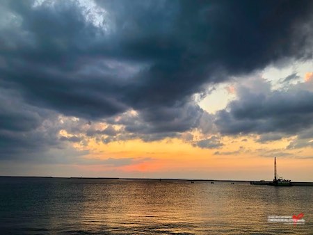 ちょうど日没時間の沖縄アコークロー、今日も癒しをありがとう。