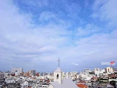 雲の隙間から青空が垣間見える那覇エリアの空、