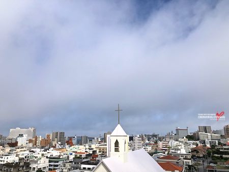 午前9時ごろから陽の光が射し始めた今日の沖縄の空。