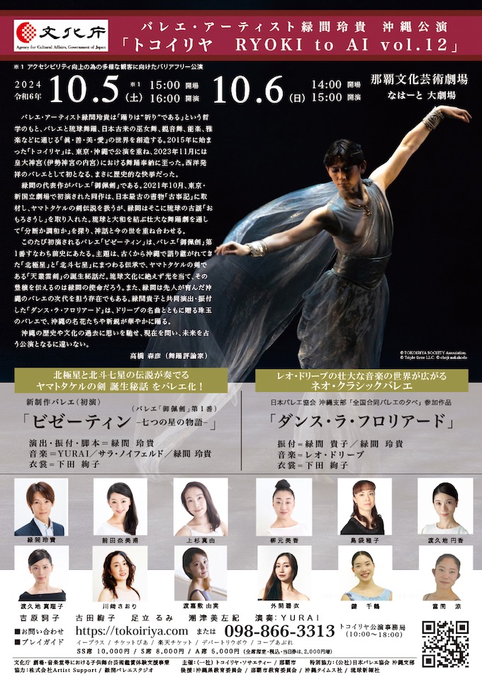 バレエ・アーティスト緑間玲貴を中心に構成しているバレエ公演企画「トコイリヤ RYOKI to AI Vol.12」が2024年10月5日(土)、6日(日)那覇文化芸術劇場 なはーとにて開催される。今回は、「ビゼーティン -七つの星の物語-」の初演、新作発表の舞台となる。5日(土)は、バリアフリー公演として、さまざまな障壁を抱えている人を対象に1,000人を無料招待する特別公演を実施。一般の観覧は6日(日)。現在前売り券絶賛発売中!