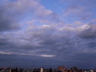 さざ波のように波打つ雲の合間から、お月様が顔を出します。