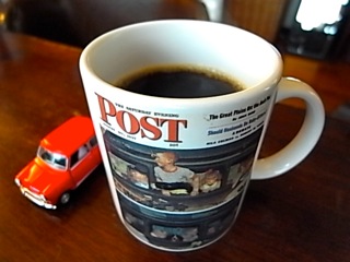 ノーマン・ロックウェルのマグカップ with Mini Cooperで。いつまでも少年の心です(笑)。