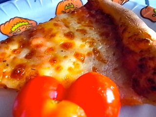 ハロウィン仕様のベースのチーズピザ。