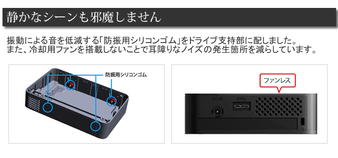 静音設計で音が気にならない。USB3.0用外付けハードディスク