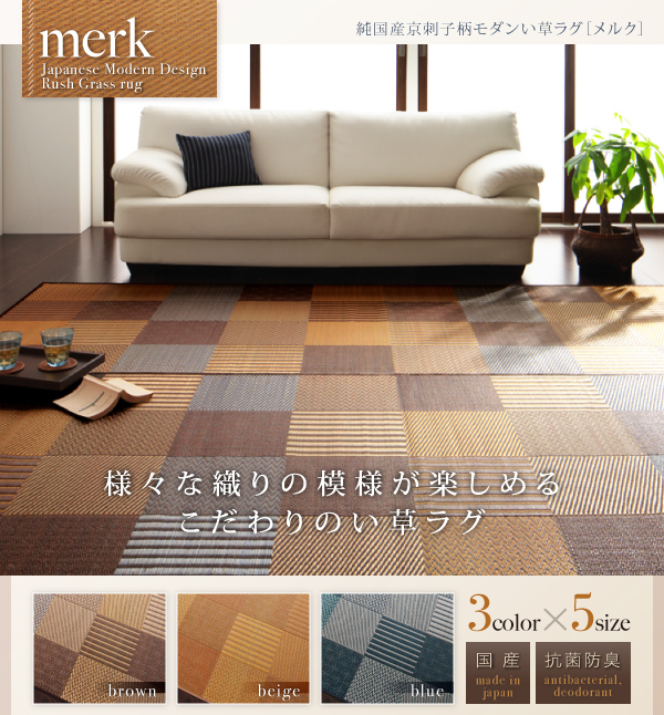 純国産京刺子柄い草ラグ【merk】メルク