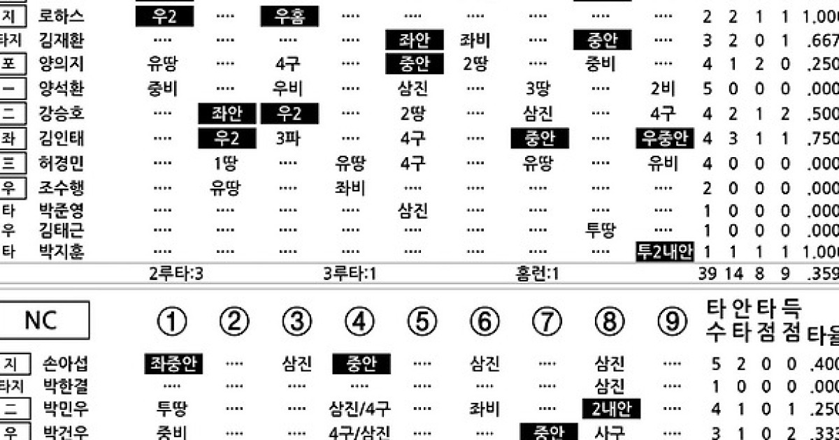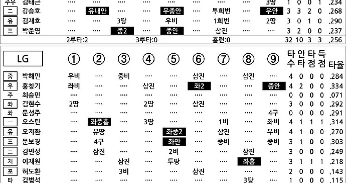 ポストシーズン進出を決めた10/14の試合では、강승호選手が3安打した。嬉しいけど、どうしたん?(笑)