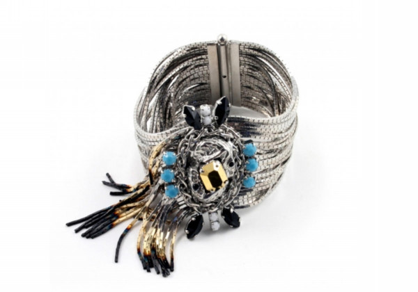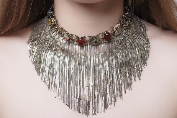 ブランドのシグネチャーとも言える「メッシュ加工のネックレス」「ステンドガラスイヤリング」「連リング」の他にも、レイヤードのネックレスやネコのような動物の顔をモチーフとしたリングなども特徴的です。