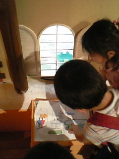 タイミングよく、絵本の読み聞かせ(紙芝居)の時間。