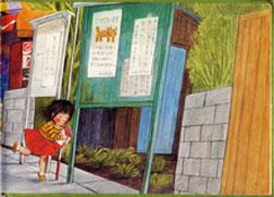 ↑(右画像)図書館のように出版されている絵本が読めるようになっていた。