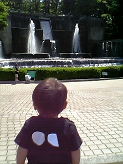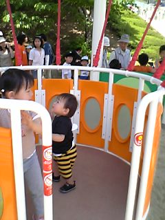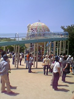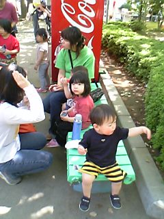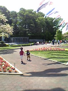 広い公園内は人でワッサワッサしている感じ。遊具もおもしろそう。そして小さい子供用なのか小屋(ブロッククッション有)があって、とても便利だった。チビちゃん達はそこで遊んだ。35mの滑り台は、さすが人気があったがユウ達は2回程滑れたみたい。