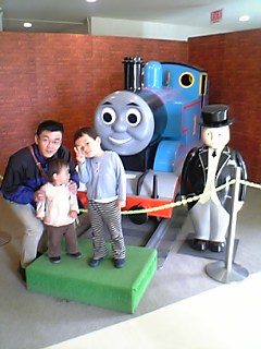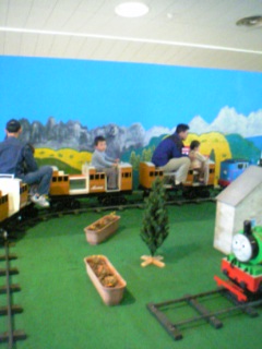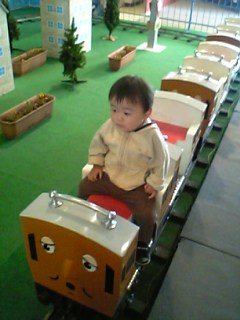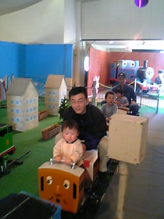 食後は、また〔トーマスランド〕へ。ユウが「絵の具シート」している間に、ケイは色々な乗りモノに乗ったよ。