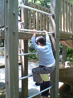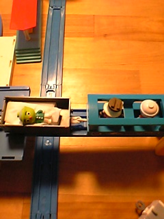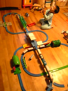 公園で遊んだ後は、早めの帰宅。途中、大好きな雑貨屋さんと、古本屋へ寄り道した。夜は、パパと子供達でプラレール。ユウが「寝台列車」を作ったよ!釜めしドンが寝てます!