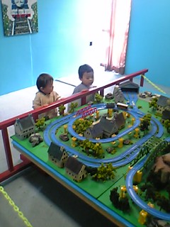 何回も出たり入ったりしたウサギ小屋。よっぽど嬉しかったみたい。次は2人の大好きな〔トーマスランド〕へ。