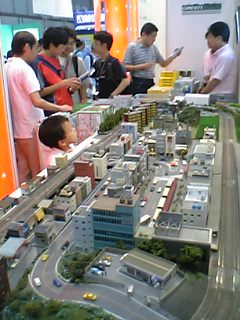 このプラモデル・ラジコンショー 2005 は、販売予定の商品を、先駆けて紹介する展示会。各会社のデモンストレーションが行われている。まったく興味がないママはオタクな雰囲気に圧倒された。でも、息子達は大喜び。食い入るように玩具をチェックしていた。
