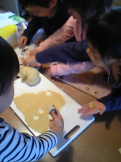 「私も」「僕も」「コレやる」「アレやる」で大変人気のクッキーつくり。出来上がりもサクサクで美味しくできて、一瞬で無くなった。↓おでん君や、アンパンマンもいるよ~。