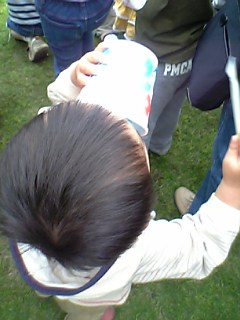 カキ氷!小さい手で、コップの底をたたいて食べていて、可愛かった。