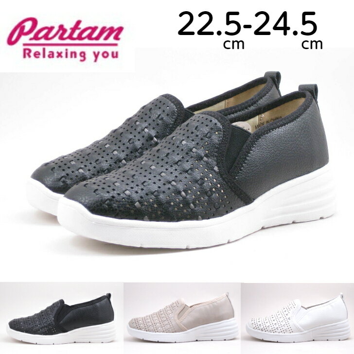 レディース シューズ スリッポン 軽量 Partam パータムスポーツ NO.38 ブラック ベージュ ホワイト パンチング スニーカー コンフォート インヒール ペタンコ ラウンドトゥ フェイクレザー 軽い 痛くない クッション きれいめ 幅広 送料無料 楽天市場